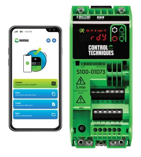 Marshal APP 与Commander S 通信简单,快捷。适用于 Android 和 iOS,使用NFC技术,只需60 秒即可完成驱动器设置,并提供面向不同应用定制的简单设置例程。FastStart 菜单可通过 Marshal 访问,提供辅助调试,只需四项关键设置即可使电机投入运行。轻点几下屏幕,即可调试、克隆、诊断系统问题并监控驱动器。